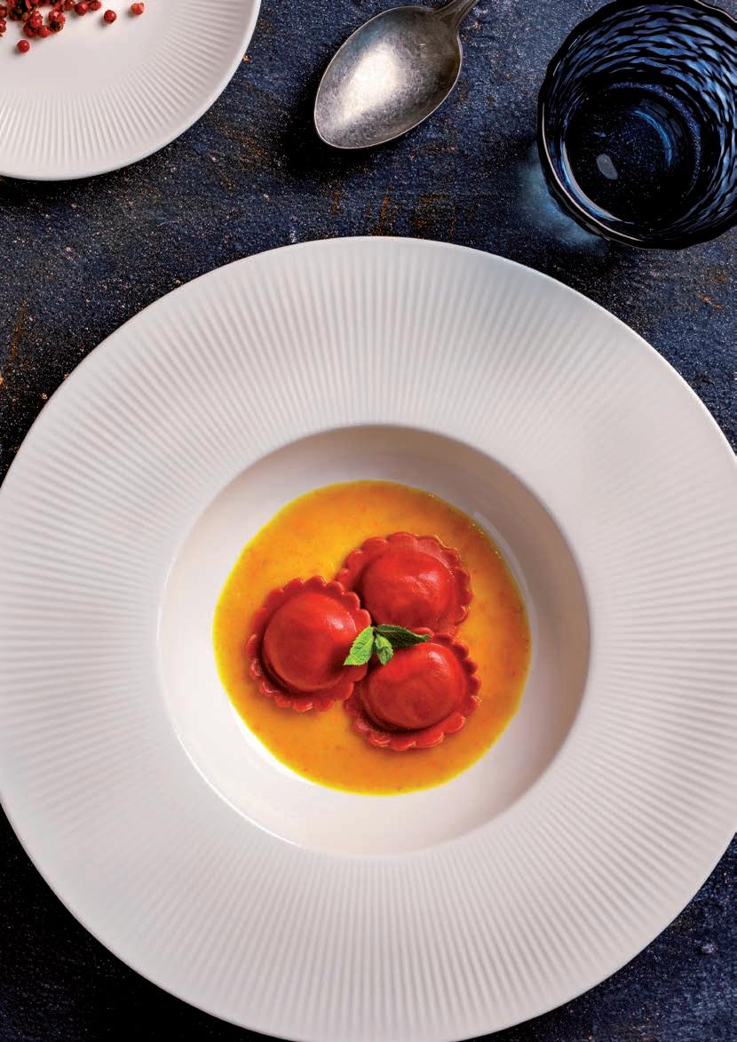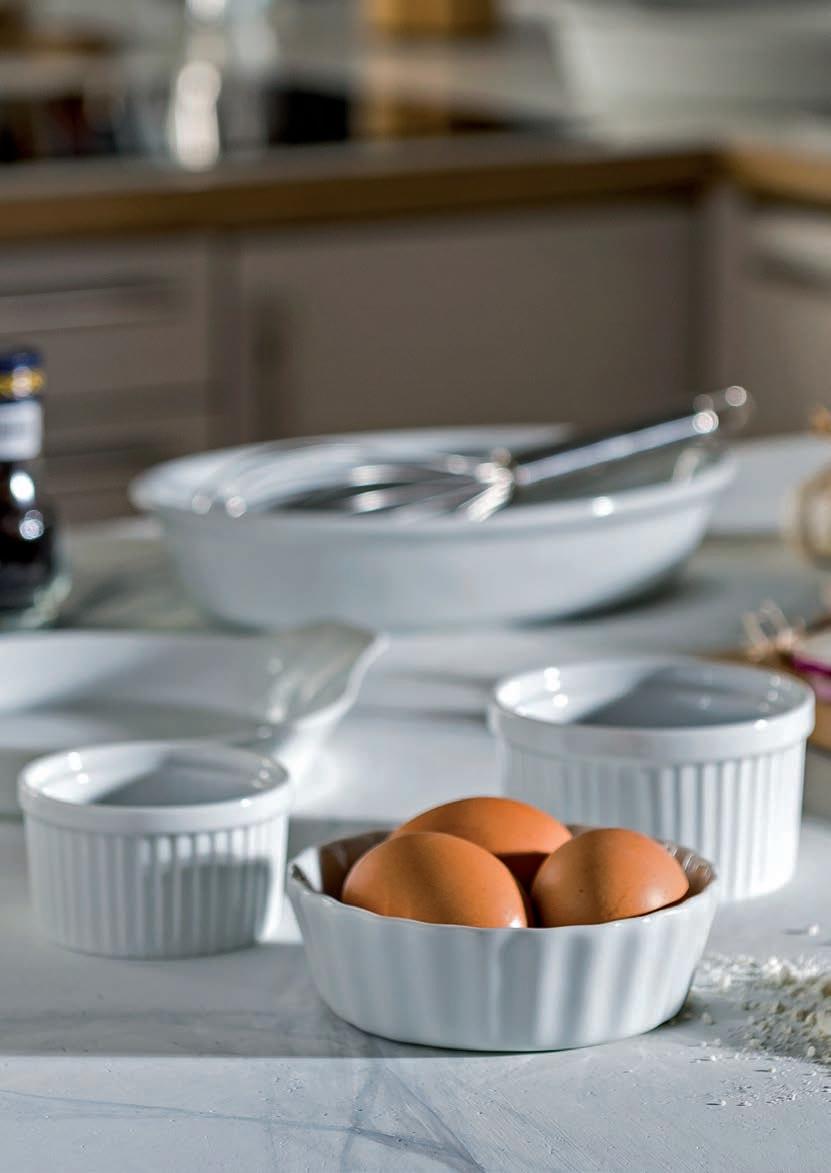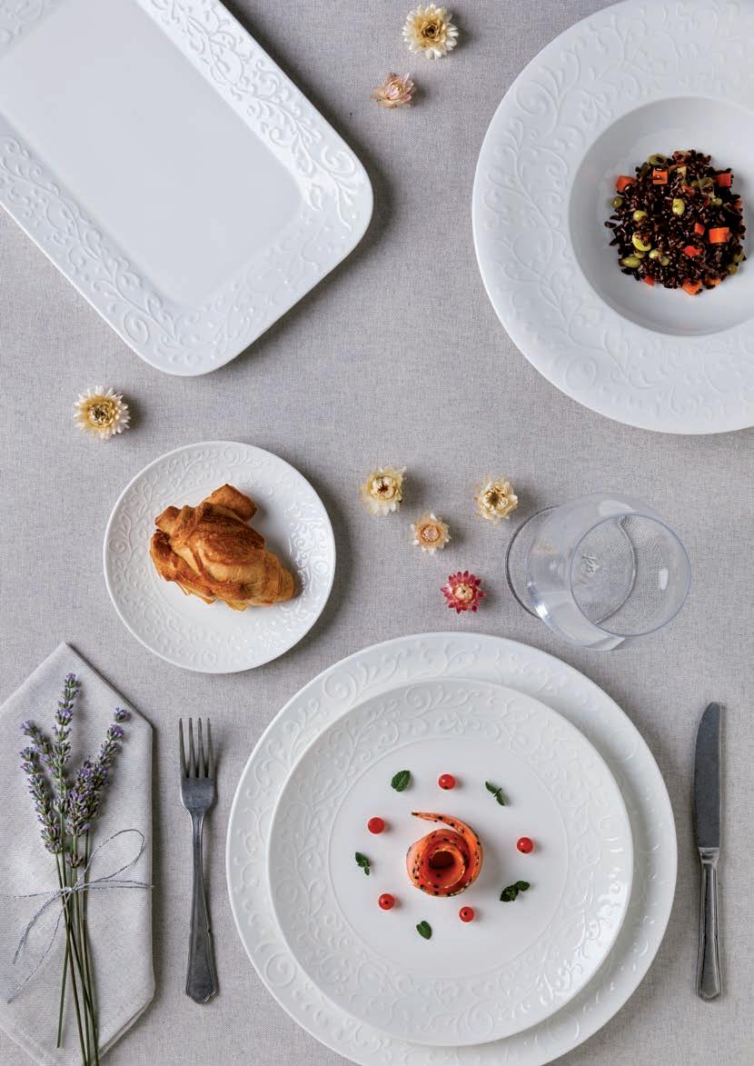 The elevated cooking temperature to which our Porcelain is exposed guarantees a high resistance to abrasions and scratches caused by normal table utensils. This is important not only from an aesthetic point of view, but - most important - hygienic.