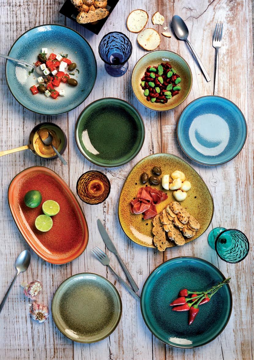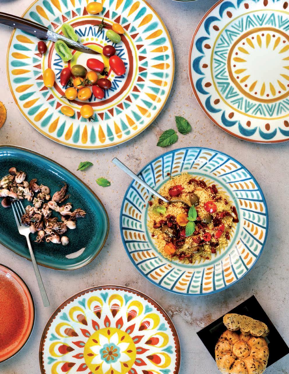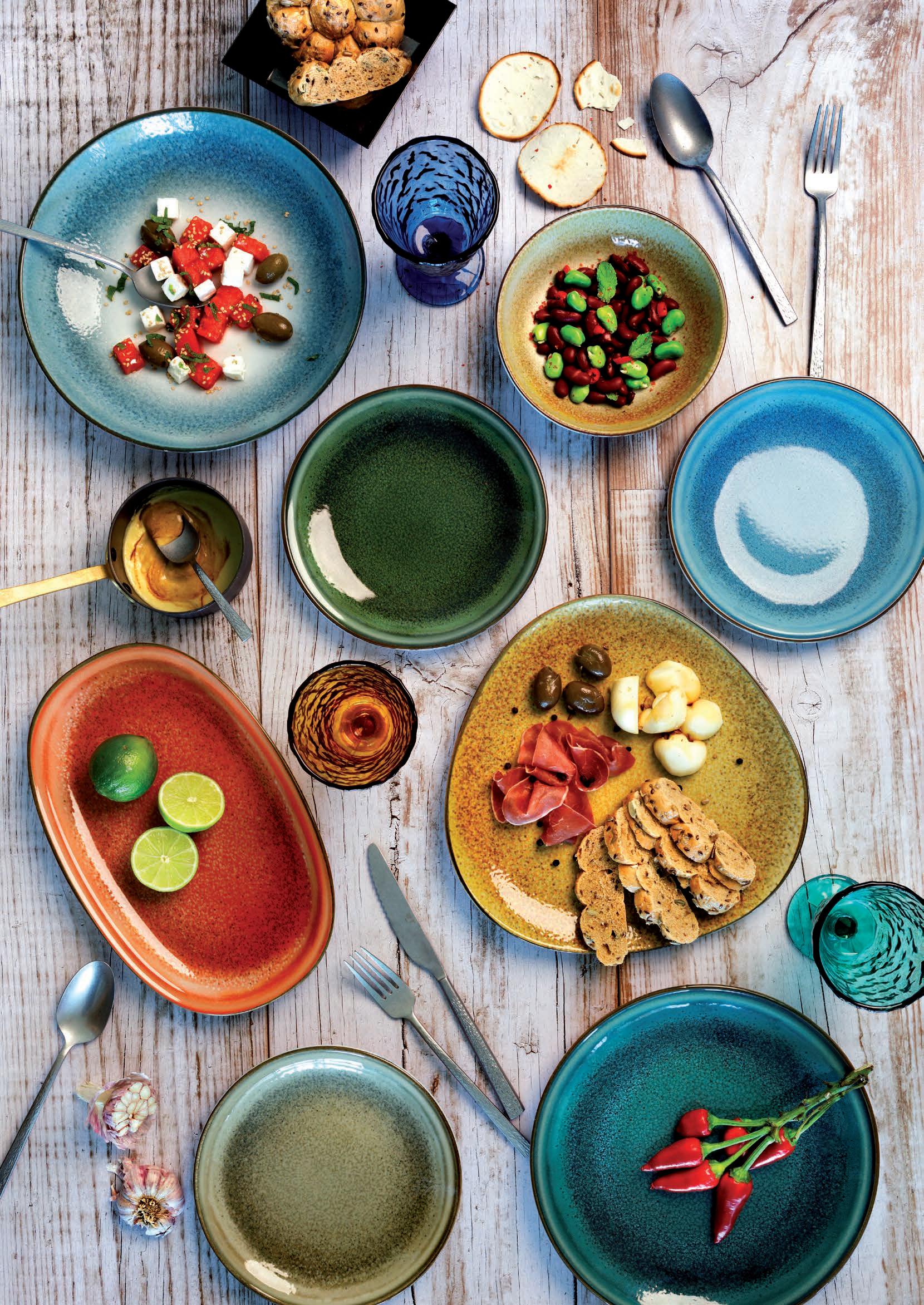 Collezione di piatti made in Italy con decorazione digitale in 6 colori che ricordano le terre del Mediterraneo un perfetto mix and match rustico ma elegante, caldo e coloratissimo.