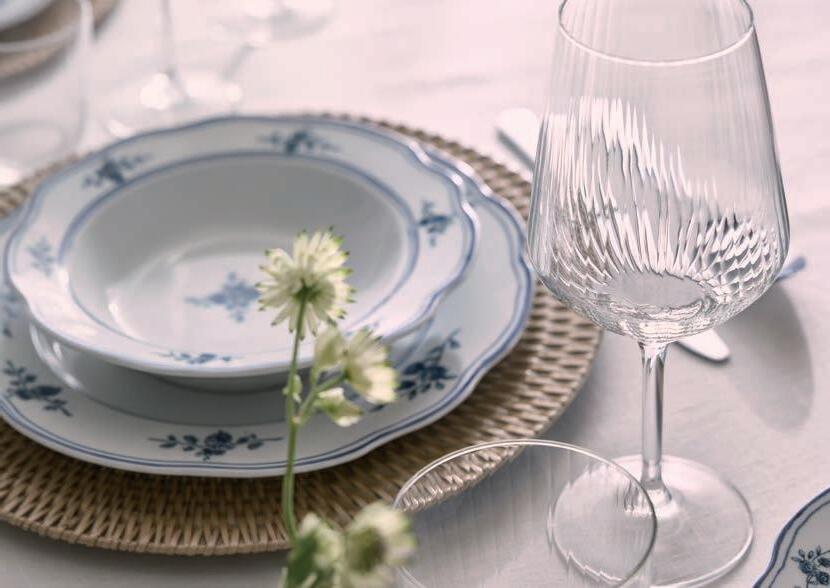 La più preziosa delle porcellane, elegante, resistente e traslucida, ottenuta attraverso l’aggiunta di cenere d’ossa animali insieme alla miscela tradizionale di caolino e felspato.