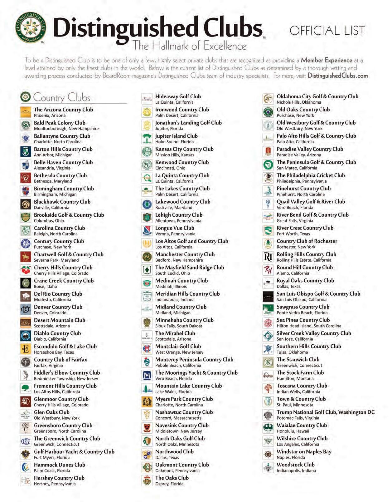 “BoardRoom’s Distinguished Clubs program is a great tool for private club managers as it allows them to share ideas about running their organizations, including how to keep members happy,” Komes injected.