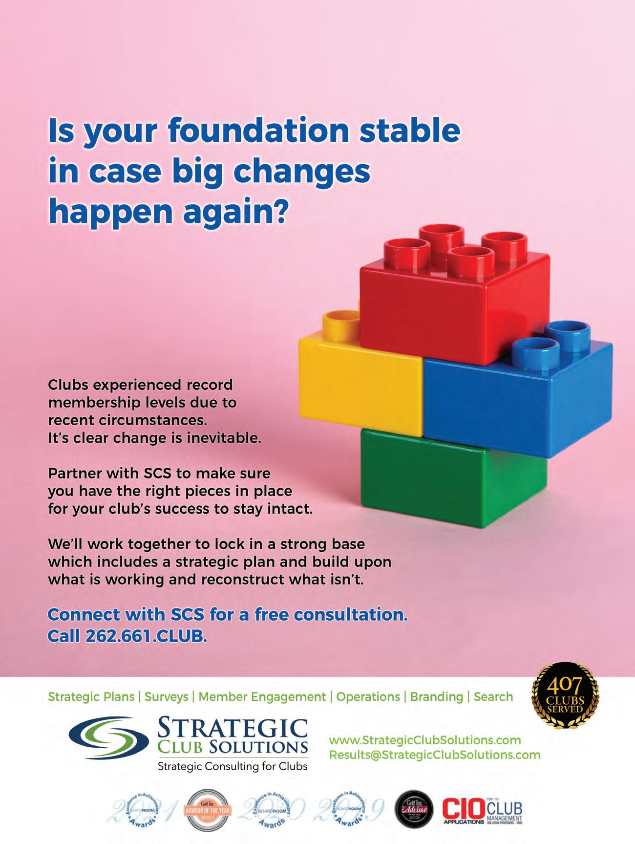 “COVID has proven to be an incredible stimulus for clubs. Members are ‘into’ their club and want it to be a safe, active place where they can socialize and recreate with known parties. However, it’s essential that club leaders understand their members and continue the progressive policies that made them so successful during the pandemic. The world is opening and if clubs do not act in ways that extend their gains from the pandemic, they’ll soon find themselves looking for members and users,” Vain cautioned.