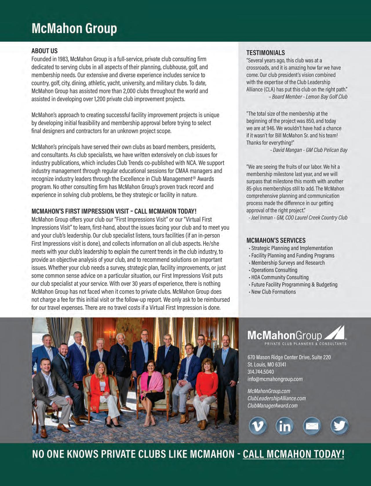 What Does Member Feedback Mean for Private Clubs? That’s the topic of John Fornaro’s Publisher’s Perspective that focuses on asking how clubs can get ‘good’ enough information to ensure they provide members with a superior member experience. Do clubs collect enough good information to enable this objective? Unfortunately, in many cases, there’s limited information, while at the same time, the accuracy of the data is questionable. But the fact is, clubs need their members to give open and honest feedback if they’re to influence their clubs’ member experience.