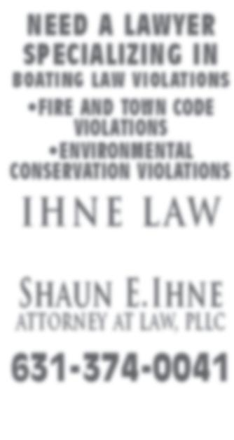 PROPELLERS PropFixer.com Bossler & Sweezey inc. Since1960 1 5 4 0 M o n t a u k H i g h w a y , B e l l p o r t , N Y 631-286-0458 Find us on Facebook After Before •Propeller Sales & Reconditioning •Rudders,Struts & Shafting •Custom Prop Modifications •Custom Stainless Steel Rudders •Hand Poured, Mil-Spec Zinc Anodes IMPROVE BOAT PERFORMANCE ljmw.com CELEBRATING 78 YEARS From 1946 to 2024 10 South End Place, Freeport, NY 11520 516-379-3311 SCHOOLS nauticalschool.com The Best Value From The #1School! Locations Throughout The Northeast RESERVE TODAY NYS Boating Safety Courses Avail. O F M ARITIME L ICENSING 631-226-7300 CAPTAIN (You) COMPLETE YOUR USCG APPROVED CAPTAIN’S LICENSE IN 2 WEEKENDS ( INCLUDES 5 EVENINGS)