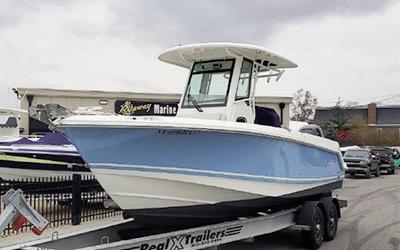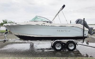 150 HP Yamaha with 1132 hrs, Includes trailer. Package includes canvas top, DF/FF, VF radio, AM/FM stereo, windlass anchor, swim platform and more $35,590(c48705)