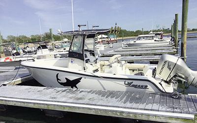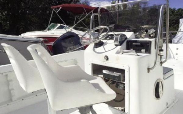 140 HP Honda in white. It includes fiberglass T-Top with electronics box, PFD storage, rod holders, LED light, dome light and more.(c49370)