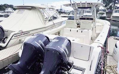 TWIN YAMAHA 200 XCA MOTORS WITH 330 HOURS, GARMIN 8612XSV, GARMIN 210 VHF, JL SPEAKER M6 UPGRADE, WINDLASS $129,900 (b53010) Riteway Marine Solutions (631) 669-2628