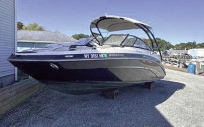 Twin, 1.8 liter High Output Yamaha Marine engines muscle this head turner from zero-to-30 in under 4 seconds with top speeds over 55 miles-per-hour. $29,998(a52674)