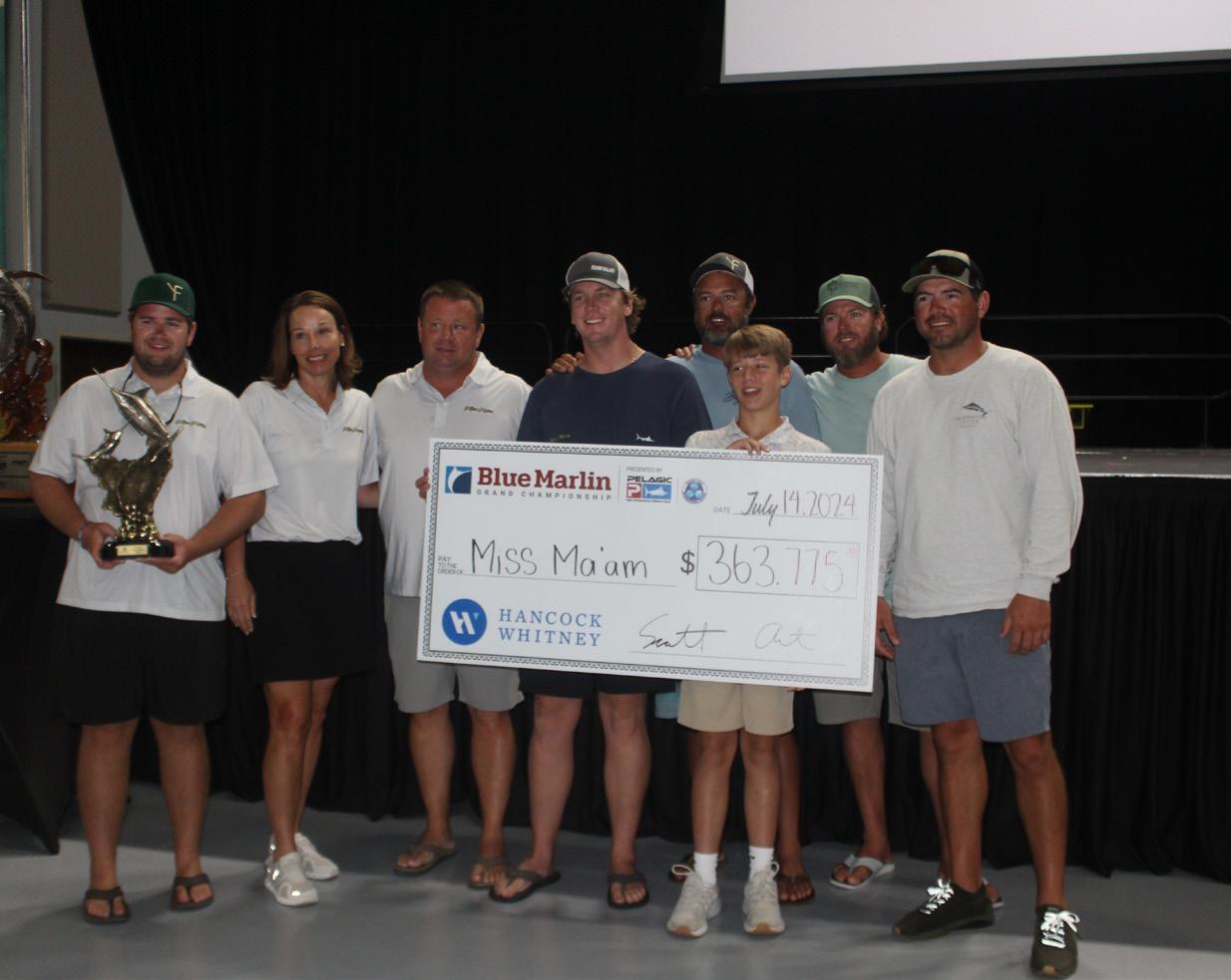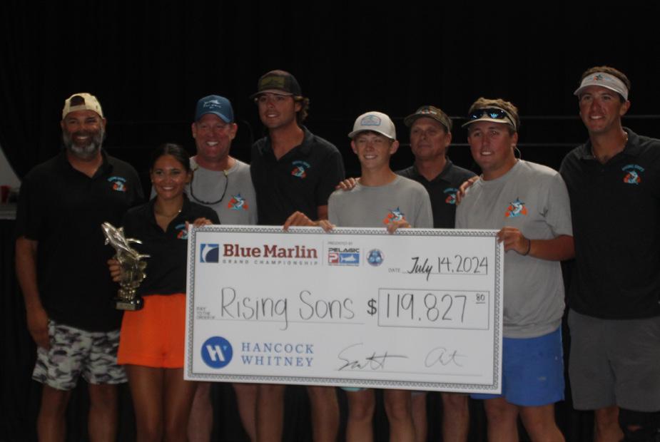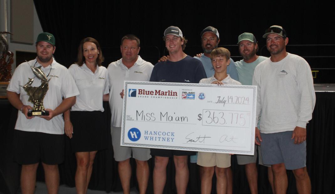 This year’s tournament resulted in a Gulf of Mexico record of 132 bill sh caught, solidifying its reputation as The Greatest Show in Sport shing. Less than one hundred pounds separated the top 4 with only 3.4 lbs between 1st and 2nd and an amazing .6 lbs securing 3rd place. Miss Ma’am was the rst to bring a marlin to the scales for the weekend and was able to hold on to take the win with its impressive 650.4 lb Blue Marlin. The tournament also saw a new record 197.8 lb tuna by Rising Sun.