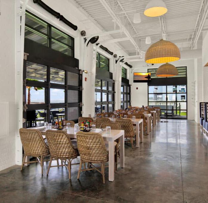 The name Harrison’s references an early name for the town, before it was of cially named Panama City. The restaurant’s brick construction with wood oors and industrial accents are a period correct homage to Panama City Marina’s history.