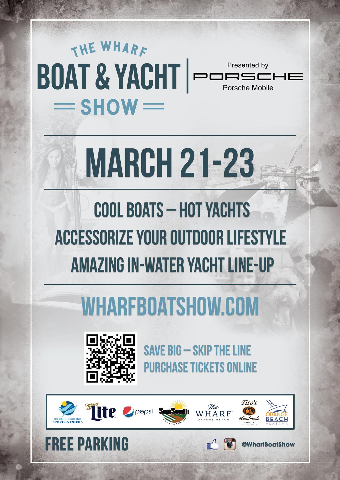 You know, Will, what Chris and I have learned is that though all boaters know about the big boat shows like Miami, Palm Beach and others, the real action, the real buying, happens at these smaller regional shows, and that is where everyone really moves the most product. Sure, the glamour and glitz is going to be in Fort Lauderdale or Miami, but the faceto-face interaction and relationships are built at these shows we do like Emerald Coast Boat Show and The Wharf Boat Show. Chris and I kind of stumbled onto