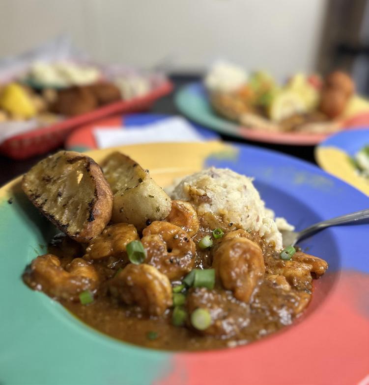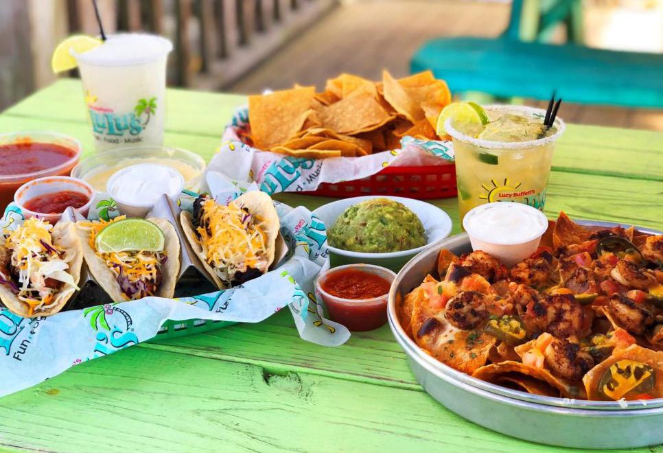 From their spectacular Paradise Burger and fries to sh sandwiches, mini shrimp spring rolls, and delicious salads, to their just right fried sh or shrimp baskets, you’re sure to nd something ideal for anyone in your party at The Paradise. They’re open for lunch and dinner, but beware, as it’s not dif cult to go for lunch and still be there basking in music, sun, and fun at dinner. This is especially true if you partake in their famous Paradise Bushwacker. Try one. You’ll see.
