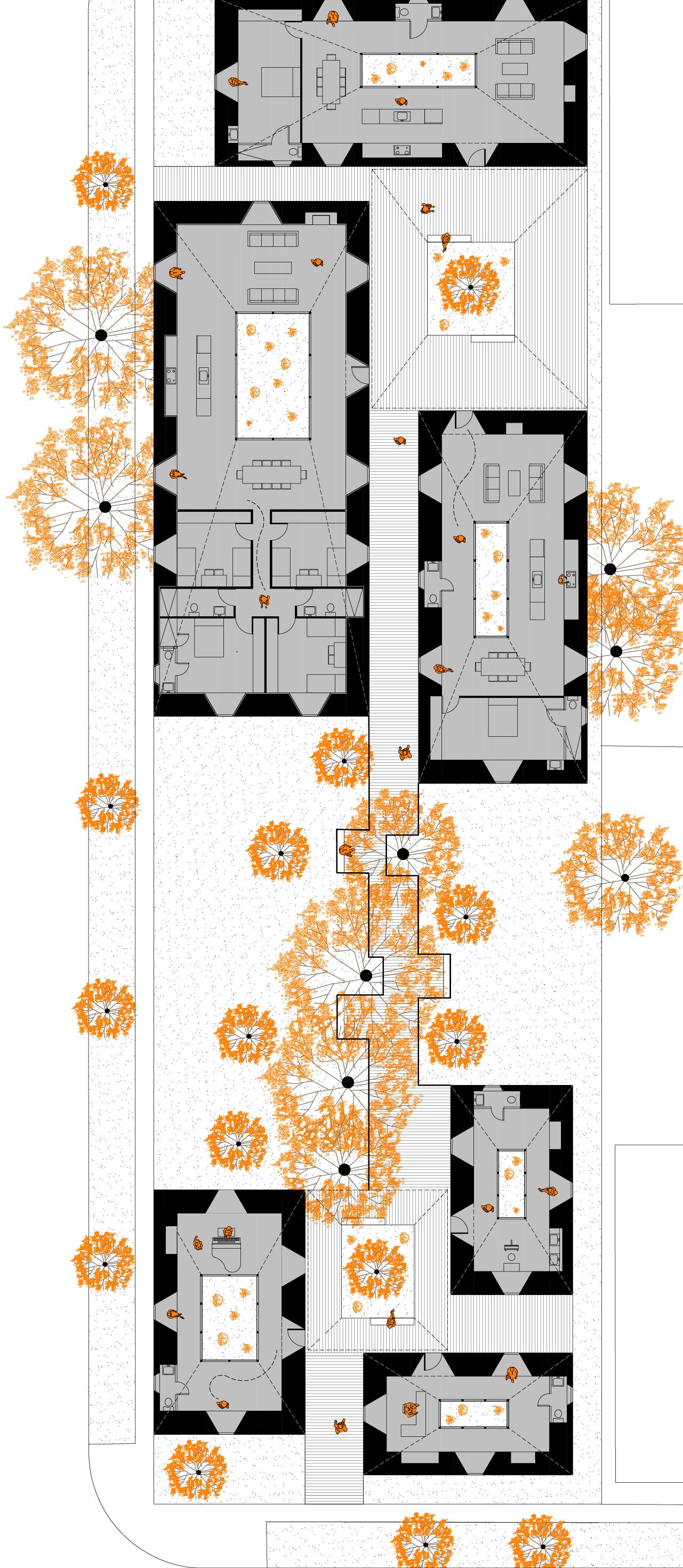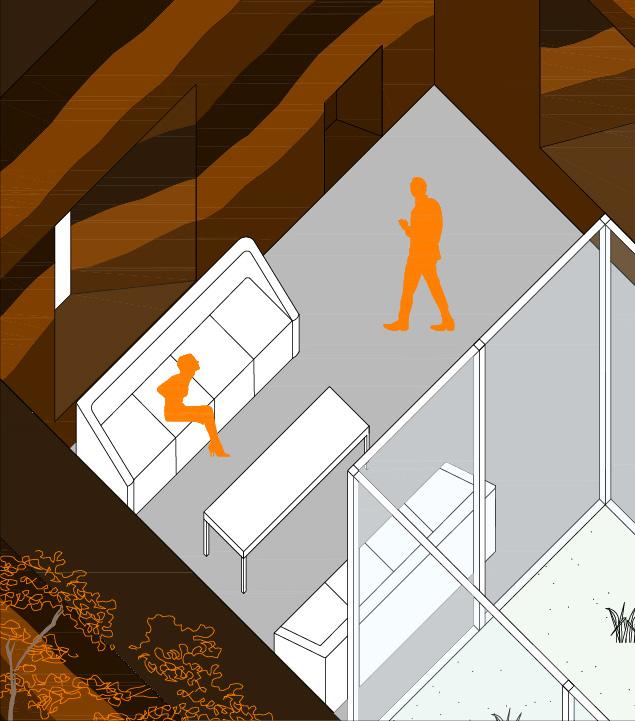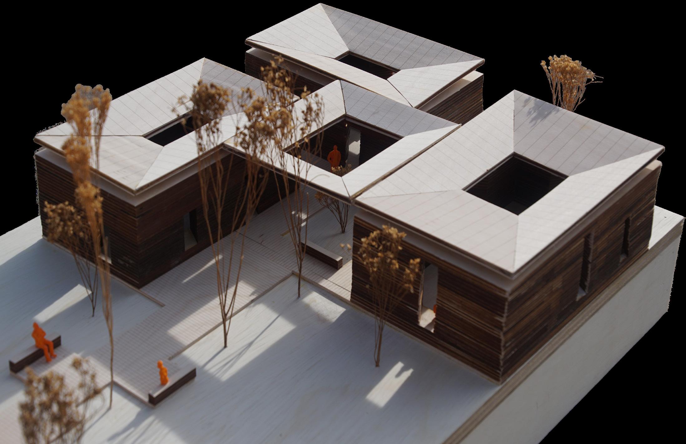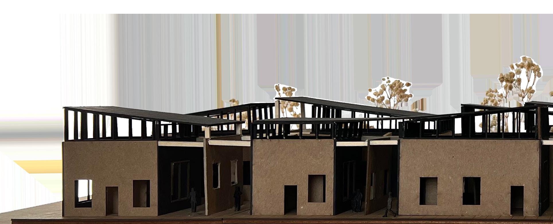 The project’s scope entails the creation of a residential space intended for three distinct households sharing a common lot. Each household is provided with individual studio units. The overarching objective of the “Inhabiting Mass” project is to engage in a comprehensive exploration of the ecological merits associated with rammed earth construction due to its low environmental impact, as it utilizes locally sourced, natural materials, reducing the carbon footprint associated with transportation. The main emphasis of the theme is to carve out voids within the masses for inhabitation. Furthermore, the intrinsic properties of impluvium together with rammed earth, facilitate the creation of an optimal indoor environment, particularly crucial during Buffalo’s harsh winter climate while simultaneously reducing heating and cooling energy requirements.