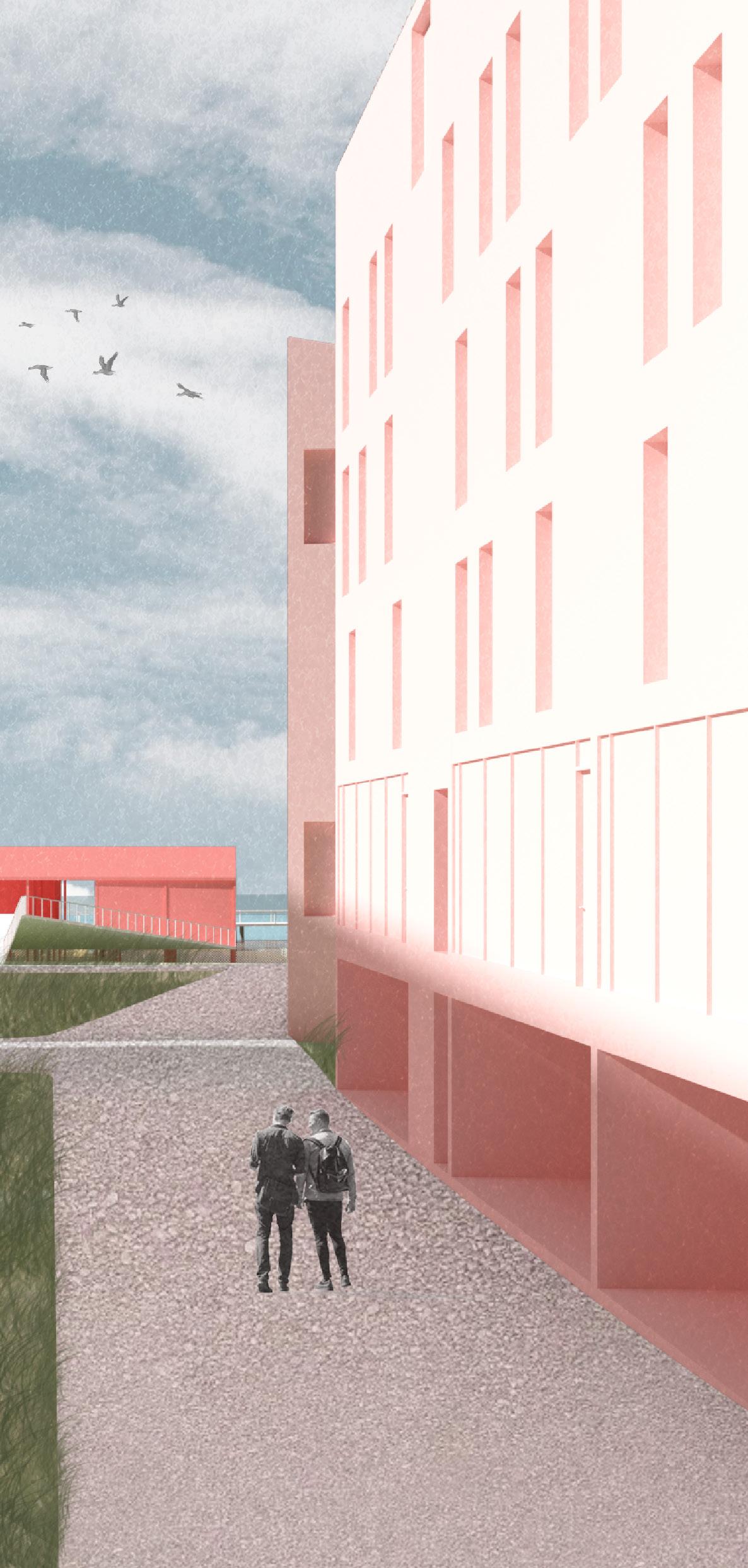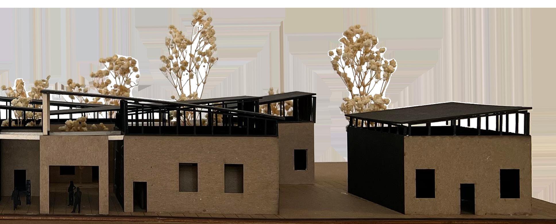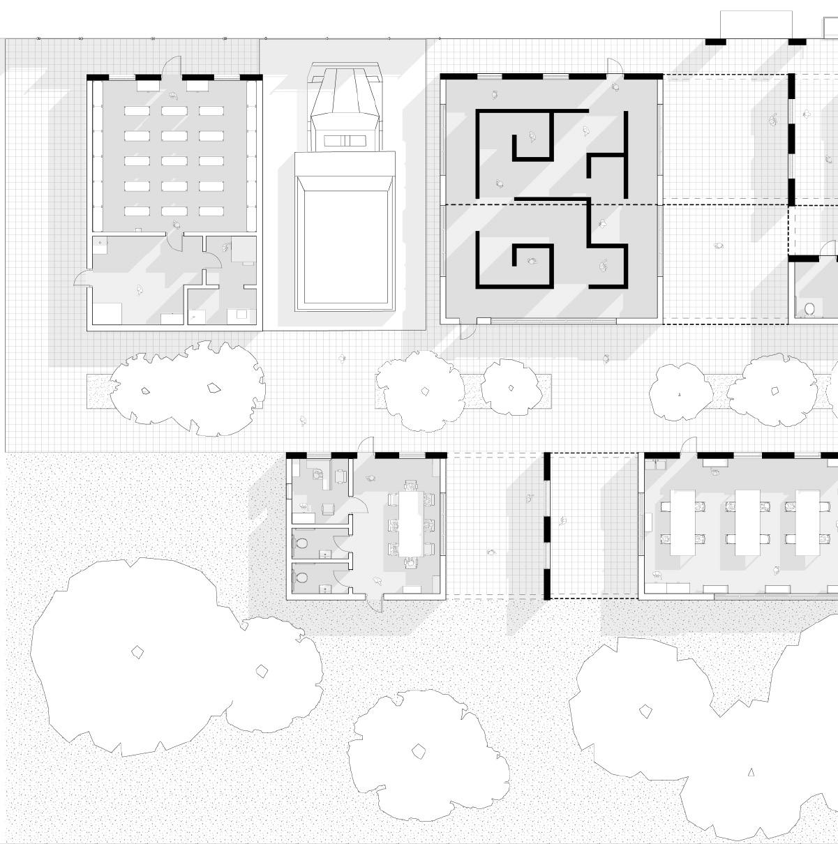 This proposal explores an option in which the program extends beyond the original building, maintaining a layout and design that closely align with the choices made in design 1.