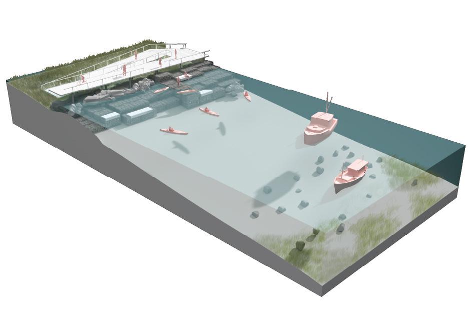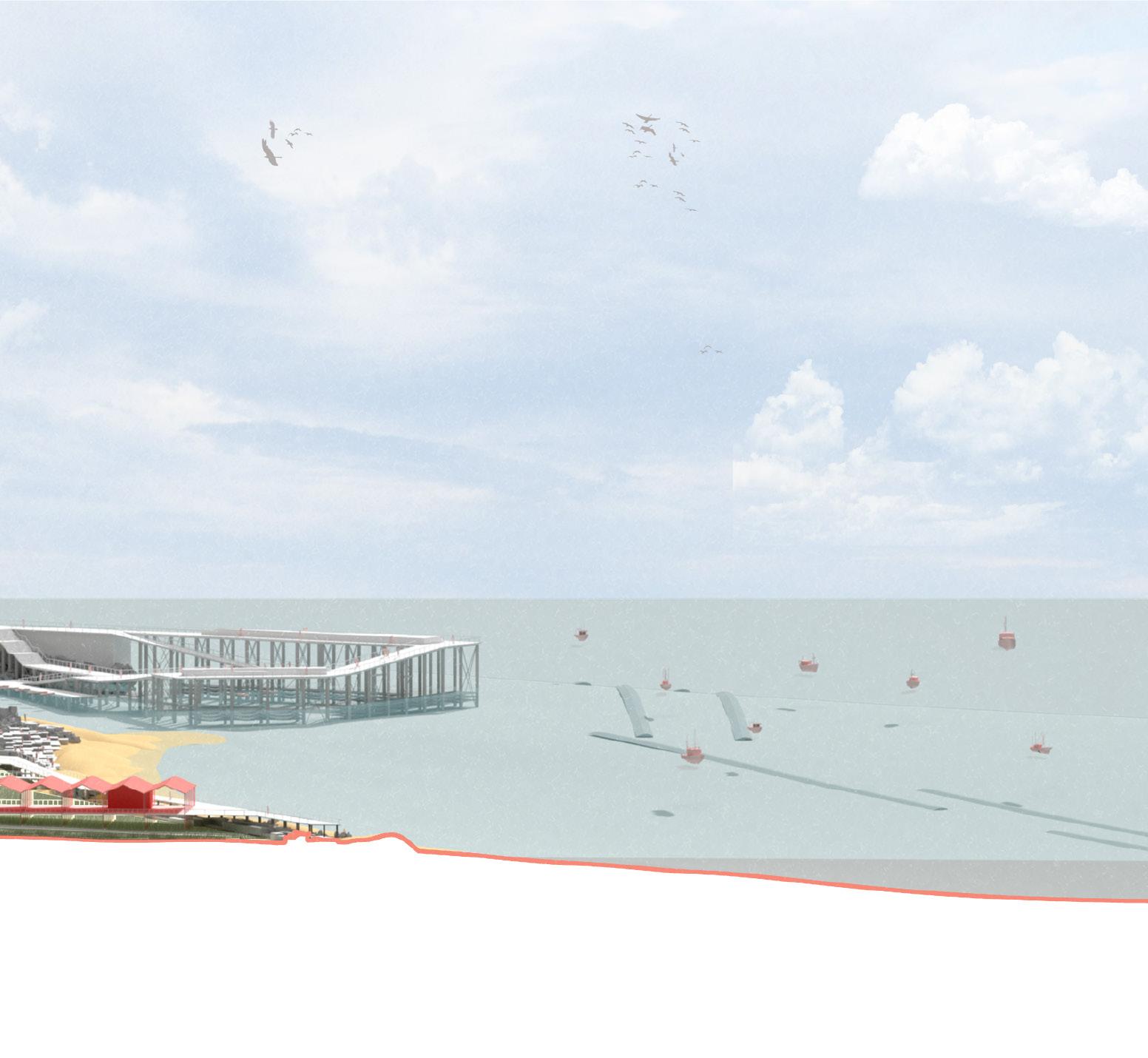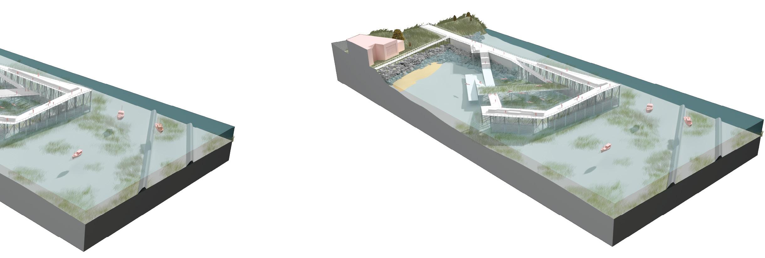 Our group concentrated on Willard Beach in South Portland, one of the hardest-hit areas during the storm. This location, characterized by its diversity and unique appeal, combines beach infrastructure, amenities, housing projects, and accessibility needs. The proposed solutions for this area include the creation of two working and recreational piers that allows access to the water even after flooding, the implementation of gabion wall platforms to prevent erosion while serving as community spaces that can eventually transform into seabeds, and the introduction of elevated platforms to maintain beach accessibility even when submerged. Additionally, reallocated housing complexes have been designed to provide accommodations and reliefs for individuals displaced by rising sea levels.