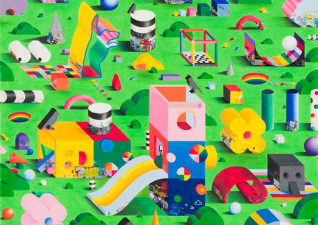 The Chief Curator leads a tour of TYPOE GRAN’s Eden, filled with playful yet unsettling symbolic imagery.