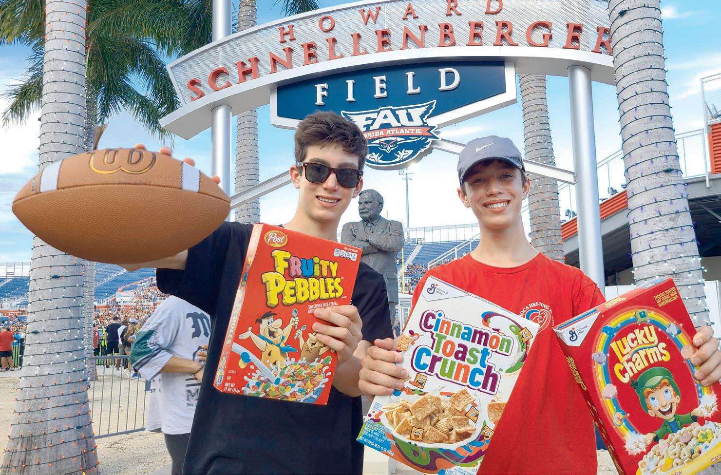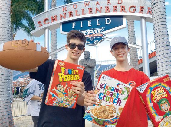 Boca Helping Hands (BHH), in col laboration with Florida Atlantic Univer sity (FAU) Athletics and Cereal4All for the second year running, commemorat ed September’s Hunger Action Month by hosting a Tackle Hunger Cereal Drive dur ing the FAU vs. Southeastern Louisiana football game. Participants donated 373 boxes of cereal, equating to 3,720 bowls and 394 pounds of food. The game took place on Saturday, Sept. 10 at the FAU Stadium in Boca Raton. Those who do nated one or more unopened cereal boxes got into the game for free, with all dona tions going to BHH’s Pantry Bag clients