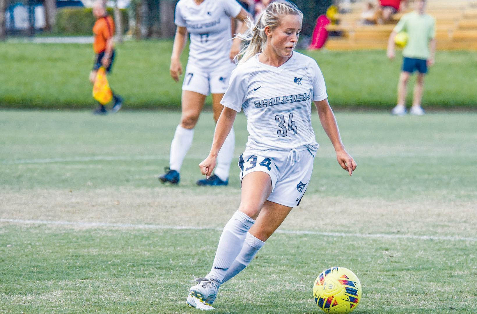 After taking the 2-0 lead, the energy and urgency fell for the ‘Fish as the Ea gles got more of the ball and created a few chances in the final minutes. Embry-Rid dle outshot the ‘Fish 8-5 in the second half and Falo made five saves. He was unable to keep his shutout as the Eagles broke through in the 84th minute of play, but the Sailfish were never really threatened again as they closed out the 2-1 victory.