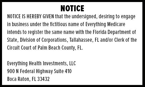 FictitiousName”BocaSpineandSport”at5601Nor thFederalHighwayBocaRatonFlorida33487thepar tyisRichardRosenChiropracticP.A.