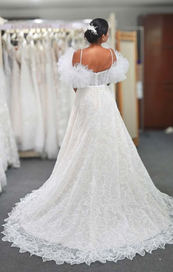 Cada diseño refleja un oficio cuidado: delicadas aplicaciones, encajes artesanales y siluetas pensadas para resaltar la esencia de quien las lleva. La colección propia convive con firmas internacionales de reconocido prestigio, logrando un portafolio diverso que se adapta a distintos estilos, sueños y personalidades.