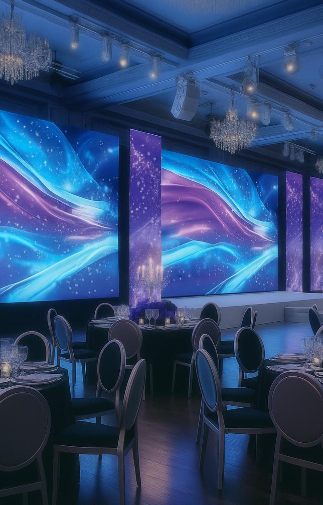 inicio de nuestra historia. El primer evento y desde entonces comprendimos el poder de la creatividad para transformar una celebración en una experiencia inolvidable. acuario con proyecciones de peces que daban vida a las paredes, mientras el techo simulaba un cielo estrellado. El momento