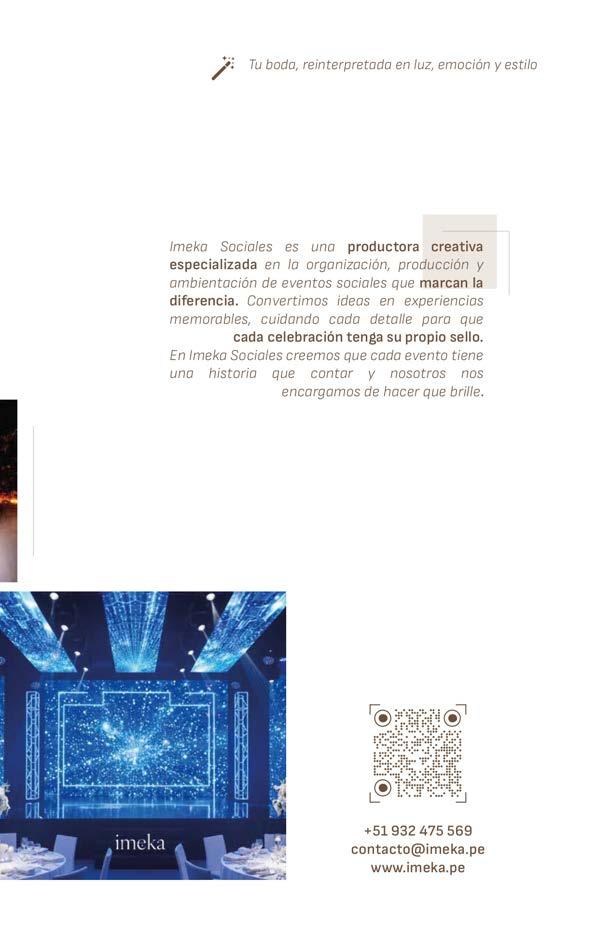 creatividad de nuestra industria. Destacamos un imperdible especial de Catering, donde exploramos nuevas propuestas, experiencias sensoriales y la importancia de la personalización en cada boda.