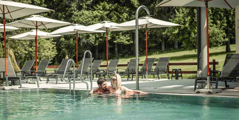 Die Wasser- und Relaxwelten auf 5000 m2 werden allerhöchsten Ansprüchen gerecht. Highlights der großen Wellnesswelt sind die Innenpools, der ganzjährig beheizte Außenpool, Whirlpool und der Naturbadesee mit Liegestegen. Die beeindruckende Saunalandschaft mit 8 Themensaunen bietet eine Panorama-Eventsauna, Infrarot-Lounge, Quellwasser-Tauchbecken, Sole-, Aroma- und Kräuterdampfbad, Finnische- und Biosauna, Kneipp-Tretbecken, Kneippteich, Icecube, Eisnebeltunnel, Hot-Relax-Pool, Spa-Bistro, großzügige Ruhebereiche und eine Sonnenterrasse mit Daybeds. TIPP: Private Spa Suite für die schönsten Momente zu zweit und Verwöhnprogramme der Extraklasse.