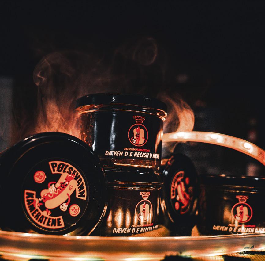 Pølsevannkameratenes relish e laga med reagensrør og pinlig nøyaktighet i samarbeid med Hoffsaus.