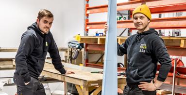 Blikkenslager Ask Solvoll (t.h.) fikk sitt svennebrev for omtrent ett år siden. Da han skulle bli lærling etter to år på byggfag, var han ikke i tvil om hvilken bedrift han ville jobbe for.