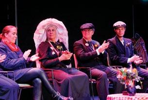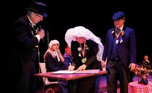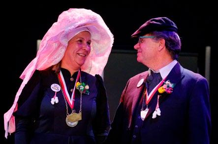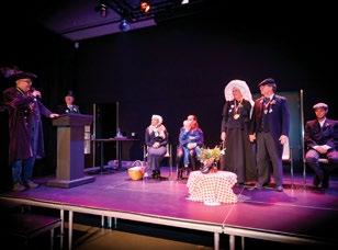aansluiten op de toespraak van Stofmeel. Hij lardeerde zijn verhaal met kwinkslagen en anekdotes die op een ludieke manier verhaalden over de activiteiten van het bruidspaar. Zoals dat je nu wel op een roze wolk kunt zitten, maar dat dat niet altijd zo blijft. Soms kreeg de gemeente een steek onder water waar D&A dan weer op inhaakte met ‘Boompje dood’. Er werd terug gekeken op hoe het was toen de