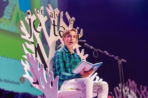 De finale van de Landelijke Voorleeswedstrijd 2023 vond plaats op woensdag 24 mei. Aangemoedigd door leerkrachten en klasgenoten is Julian Cornelissen uit Waalre heel knap derde geworden in de landelijke finale. (Foto: Loek Buter).