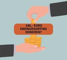 In november én december ontvangen alle huishoudens in Nederland 190,- euro energiekorting op hun rekening. Niet iedereen heeft deze korting nodig, terwijl er juist ook huishoudens zijn waarvoor 190,euro niet genoeg is om de energierekening te betalen. Ontvang je 190,- euro energiekorting en heb je deze niet nodig? Je kunt het bedrag doneren. Aan personen, huishoudens of organisaties in jouw directe omgeving die je kent en het goed kunnen gebruiken, of aan bijvoorbeeld goede doelen.