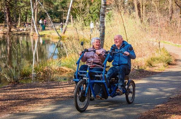 Mevrouw van Stekelenburg en Jan Faasen gezellig met de duofiets op pad.