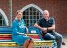 Jacqueline Coppelmans en Joop Schaffels op het bankje bij het Huis van Waalre (Foto: Jurgen van Hoof).