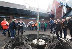 klaar om de Jubileumboom (Lindeboom) ter ere van het 100-jarig bestaan van de gemeente te onthullen. Met veel plezier werd ‘het laatste stukje’ van de boom geplant.