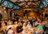 ‘Het toetje’ bleek echter een volwaardig driegangenmenu. Letterlijk, want de zaal zat vol dinerende gasten die onder het genot van wijn en spijs konden genieten van het concert. Maar ook figuurlijk, want het publiek werd getrakteerd op een rijke mix van muziek, beeld en entertainment. Het podium was gevuld met mu-