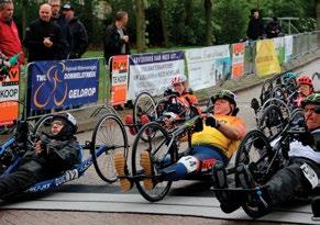 Events. René: “Omdat ik geen nee kan zeggen besloot ik ook hieraan mee te doen, eerst met Team – Vive en daarna met FluffyRabbit, Een marathon-estafette van 500 kilometer die je met je team binnen 24 uur moet afleggen, en dat alles om zoveel mogelijk geld op te halen voor het Ronald McDonald Kinderfonds.” In het coronajaar als de HomeRide niet door gaat blijft René trainen. Hij besluit om samen met goede vriend Mike een sponsortocht te rijden voor de zorgverleners van de verzorgingshuizen in Geldrop. “Als extra acties heb ik in de winter vogeltaarten gemaakt, in 2022 het Pieterpad en in 2023 de Kustroute gereden. Ook heb ik afgelopen jaar deelgenomen aan de marathon van Berlijn. De teller staat inmiddels op 23.500 kilometer die ik in 8 jaar met de armen heb weggetrapt. Nu staat van 8 tot en met 14 juni de grensroute op het programma en nu ook weer voor de huizen Kindervallei en Ronald McDonald Huis Maastricht om zoveel mogelijk nachtzoenen op te halen.” Wie René wil helpen kan dat via onderstaande link: https:// www.homesportevents.nl/acties/ grensroute-op-de-handbike-2024