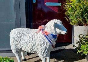 Kunstschaap Sjiep moest zelf ook even zoeken naar de nieuwe recla mesticker op de brievenbus.
