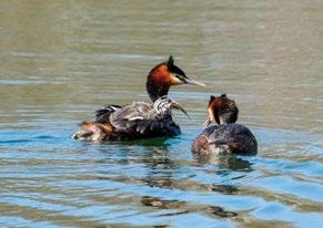 Een fuut met jongen. IVN Geldrop organiseert vanaf dinsdag 24 maart een reeks vogelexcursies in en rond Geldrop. (Foto: Frans van den