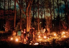 Het terrein was prachtig verlicht met fakkels en kaarsen, en op de achtergrond klonk zachte, sfeervolle muziek die bijdroeg aan de warme en troostrijke sfeer.