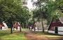 Kunstschaap Sjiep bezocht het terrein op zondagochtend voordat de wedstrijden begonnen en genoot van de fleurige aanblik. Compli-