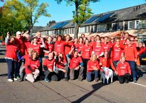 Geldropse lopersgroep LOGO. In enkele uren tijd reikten de meer dan dertig helpers duizenden bekertjes water uit. Kunstschaap Sjiep stond hen bij en ging met de hele groep op de foto.