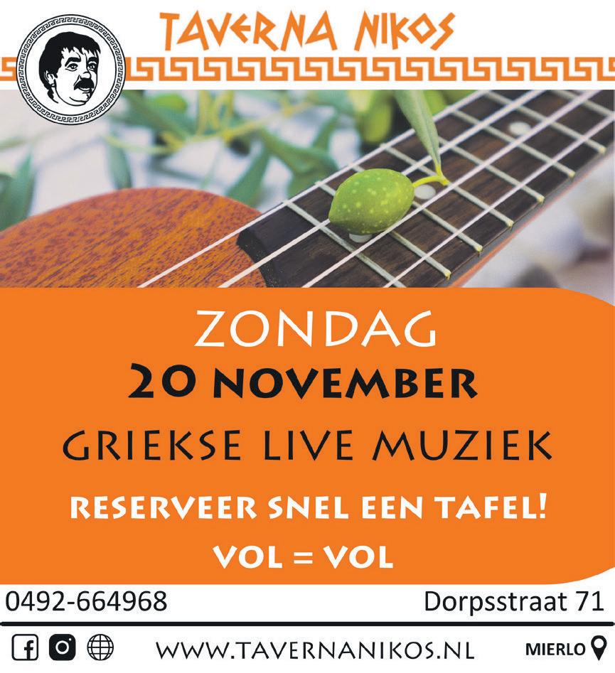 SHOP DE NIEUWE COLLECTIE ONLINE WWW.LENSSENMANDERS.NLGRATIS PARKERENDE GROOTSTE VAN DE REGIO • MEER DAN 150 TOPMERKEN • STYLE EXPERTS ALTIJD AANWEZIG • DORPSSTRAAT 161B MIERLO KOOPZONDAG 16 OKTOBER 12.00 TOT 17.00 UUR ELKEKLANTONTVANGTONZE UNIEKEKOFFIECADEAU Despecialistmetaandachtvoorélkemanenélkegelegenheid Dorpsstraat95Mierlo|lenssenmannenmode.nl| P GRATISPARKEREN 16OKTOBER12:00-17:00 KOOPZONDAG OKTOBERKOFFIEMAAND MAAKKANSOPEENUNIEKKOFFIEMAATJE Hans van den Heuvel Hoveniersbedrijf • Tuinaanleg • Onderhoud • Renovatie Emmalaan 2 • 5664 AH Geldrop • Tel. 06 - 532 94 179 STEVENS Samsung, Sony, Philips, LG, Sonos De Televisie Specialist met een verrassend lage prijs! Grootschoterweg 105 BUDEL-SCHOOT (NL) Tel. 0031 (0)495 49 36 16 www.stevensbudelschoot.nl UW (O)LED-TV ADRES! ACTIEPRIJZEN!! Kijk op onze internetsite! LED TV, UHD TV, Curved TV, OLED TV Spaarpot oost 12a, 5667 KT Geldrop Reparatie, APK, Bandenhotel en onderhoud alle merken. Geldrop, tel: 040 - 7858331 Ook onderhoud voor campers en bedrijfswagens Kan je oude hypotheekrente meeverhuizen? Ook dan zijn we er voor jou. vertrouwd, verzekerd, Veldsink. Marktstraat 18, Mierlo 0492 - 66 17 12 mierlo@veldsink.nl | veldsink.nl Kan je oude hypotheekrente meeverhuizen? Ook dan zijn we er voor jou. Loop vrijblijvend bij ons binnen. Onze deur staat voor je open. Hypotheken | Verzekeringen | Pensioenen | Betalen | Sparen SLAGERIJ VAN HOOF KIEVITSTRAAT 50 GELDROP TEL. 040-280 19 95 www.slagerijvanhoof.nl info@slagerijvanhoof.nl Voor al uw vlees en vleeswaren Ribkarbonade 500 gram € 2,50 Kipdrumstick naturel 500 gram € 1,50 Mager runderstoofvlees 500 gram € 5,99 VLEESWAREN WEEKPAKKET 100 gram Wijncervelaat 100 gram Boterhamworst 100 gram Gebraden gehakt Alle 3 samen € 2,50 Geldig t/m 15-10-2022 en zo lang de voorraad strekt Bloemschikken voor kerst Door Ellen Deelen Maandag 6 december 2021 De workshop bloemschikken vindt plaats op maandag 6 december van 13.30 tot 16.00 uur en wordt geleid door Ellen Deelen; de workshop staat in het teken van kerstmis U kunt zich tot 23 november aanmelden bij via www.tsaam Ellen Deelen zorgt voor alle materialen en een voorbeeld. De kosten bedragen 27,50 euro; deelnemers die niet in Geldrop Mierlo wonen, betalen 5 euro meer. U kunt zich tot 1 december aanmelden via www.tsaam.nl, onder vermelding van de naam van de workshop en de naam van de deelnemer. De aanmelding is pas definitief na betaling via NL28RABO0134102924 ten name van Stichting ’t Saam. 26 NOV. EN 3 DEC. VAN 09.00 UUR TOT 11.30 UUR WORKSHOP KERSTORNAMENTEN INFORMATIE EN INSCHRIJVEN KIJK OP: WWW.TSAAM.NL ‘t Saam Hekelstraat 4 5731 JD MIERLO tel. 0492-665411 mail: info@tsaam.nl website: www.tsaam.nl Gebruikte banden vanaf €25,00 incl. montage en balanceren. Te koop gevraagd loop- en sloopauto’s. Direct geld en RDW vrijwaring. Thomassen Auto’s Haspelweg 37 Deurne Tel. 06-53926499 T.k. gebruikte bouwmaterialen, vloerplanken, deuren, ramen, ijzeren balken enz. Verberne Meijelseweg 37 Beringe. Tel. 077-3078609. T.k. gevraagd land- en tuinbouwmachines o.a. ploeg, frees, spitmachine, kopeg, weisleep, bloter, mesttank, kipper, schudder, hark, tractor enz. 06-19076959. Digitaliseren van uw smalfilms, videobanden en dia’s. Al uw videowerk bij ons in goede handen. 06-53391018 Car City Service Center. Het vertrouwde adres al 22 jaar voor al uw auto reparaties. 040-2802115 Bel voor een afspraak! www.dasmediacentrum.nl Drukwerk & Verspreiding