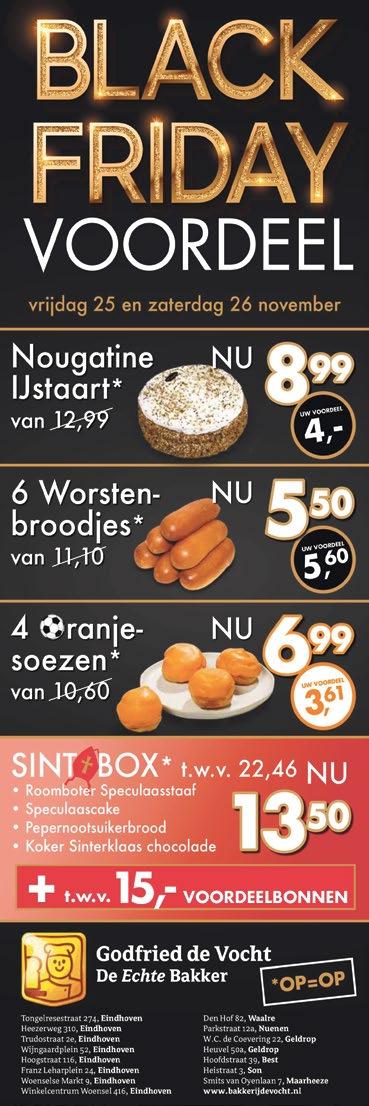 & PERSOONLIJKE UITVAARTZORG KLEINSCHALIG EIGENTIJDS Emopad 56, 5663 PB Geldrop www.hansraaijmakers.nl Tel. 040 780 8000 info@hansraaijmakers.nl Sportpark “De Kievit”, Kervel 6 Geldrop ZBC Automatisering Geldrop - WWW.ZBC.NL ZONDAG 4 OKTOBER AANVANG 14:30 VV GELDROP 1 - VERITAS 1 ZONDAG 27 NOVEMBER AANVANG 14.30 UUR VV GELDROP 1 - FC BOSHUIZEN 1 Sportpak ‘De Kievit’, Kervel 6 Geldrop ZBC Automatisering Geldrop - WWW.ZBC.NL AANBIEDING Reef Pampa schijven 2 stuks 5,50 HEUVEL 31 • GELDROP Gehaktbal in jus met stamppot naar keuze per portie 6,00 GroenRijk *Alleen geldig op vrij 25, za 26 en zo 27 nov kunstkerstbomen