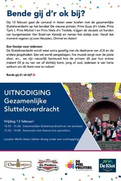 Zaterdag 14 februari: 18.00 uur: Carnavalsviering, m.m.v. carnavalsvereniging De Peelvrujters en boerenkapel De Turvers.