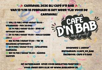 Zaterdag 14 februari: 18.00 uur: Carnavalsviering, m.m.v. carnavalsvereniging De Peelvrujters en boerenkapel De Turvers.
