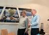 Verenigingsvoorzitter Matt Verhaegh (r) feliciteert Harrie Eijsbouts met diens benoeming tot erelid van de Jan Paagman Sterrenwacht.
