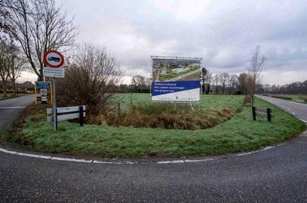 Het bouwbord aan de rand van het perceel in betere tijden. (Archieffoto: Hein van Bakel)