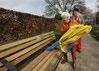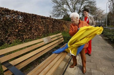Annie met haar houten bankje met daarop een naamplaatje met haar gegevens. (Foto: Jurgen van Hoof)