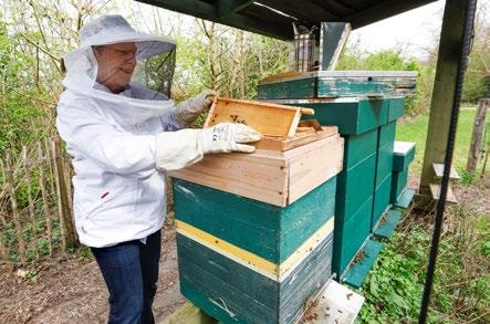 Toen de vorige imker ermee stopte, besloten Ankie Slaats en haar man om de handschoen (en de rest van het imkerpak) op te pakken. “Wij zijn samen een imkercursus gaan volgen”, vertelt Slaats, die lid is van bijenhoudersvereniging St. Ambrosius uit Veldhoven. Ze is gefascineerd door de honingbij. “Een bijenvolk werkt als één organisme. Iedere bij heeft zijn taak. Dat is heel mooi om te zien.”