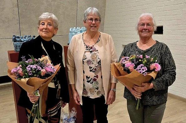 jubilarissen gehuldigd. Op de foto vlnr: Clémènce van Leuven, 50 jaar, Cecil Heijmans, 40 jaar en Anneke Droog, 60 jaar lid. Deze dames zijn hebben samen